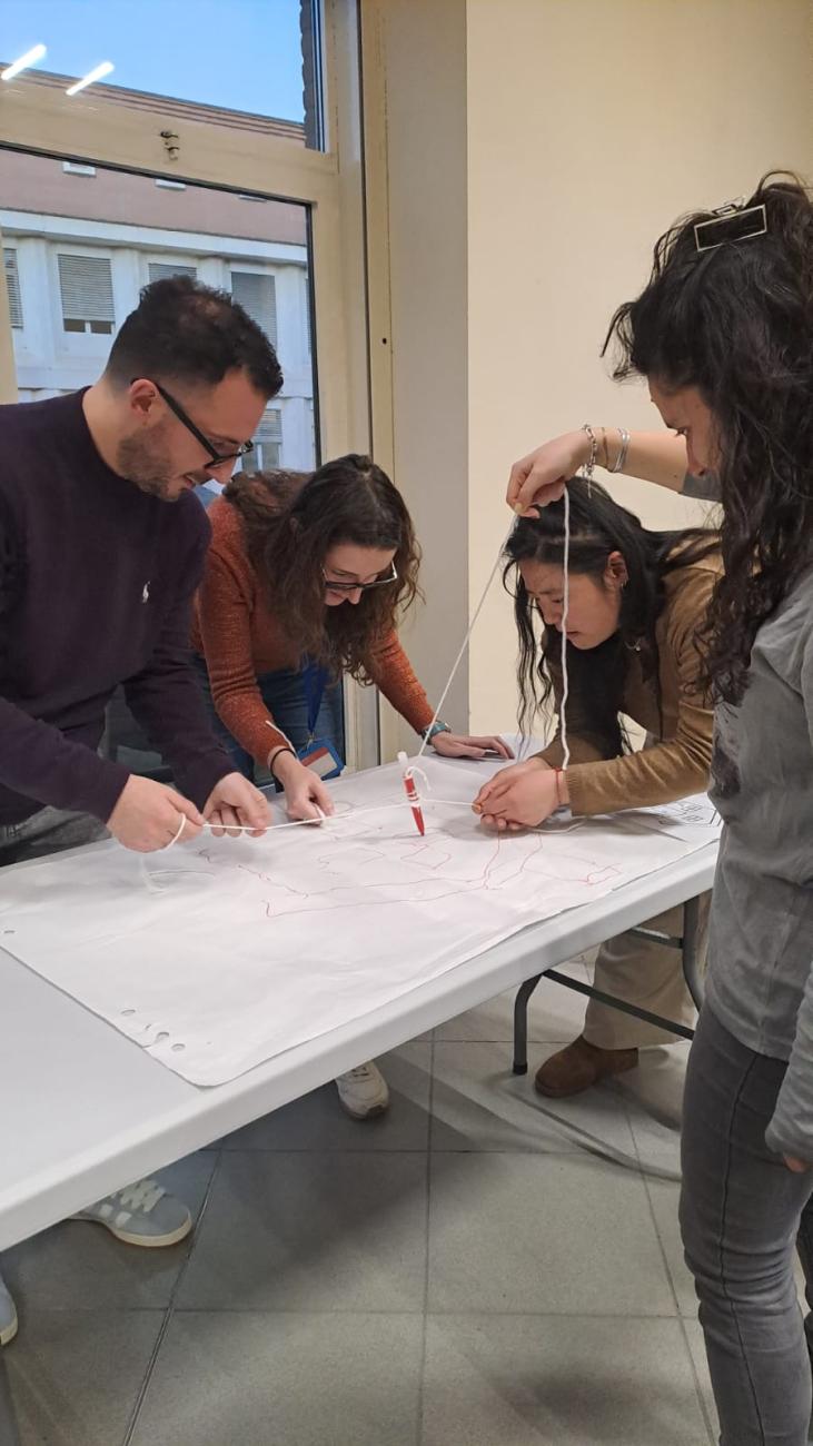 The challenge? Each participant holds the end of a string, and everyone is connected to a pen suspended in the center. The goal was to reproduce a given figure without directly touching the pen with their hands. After spectacular launches and a few “emergency” landings , discover what they were supposed to — and actually managed to — draw!!!